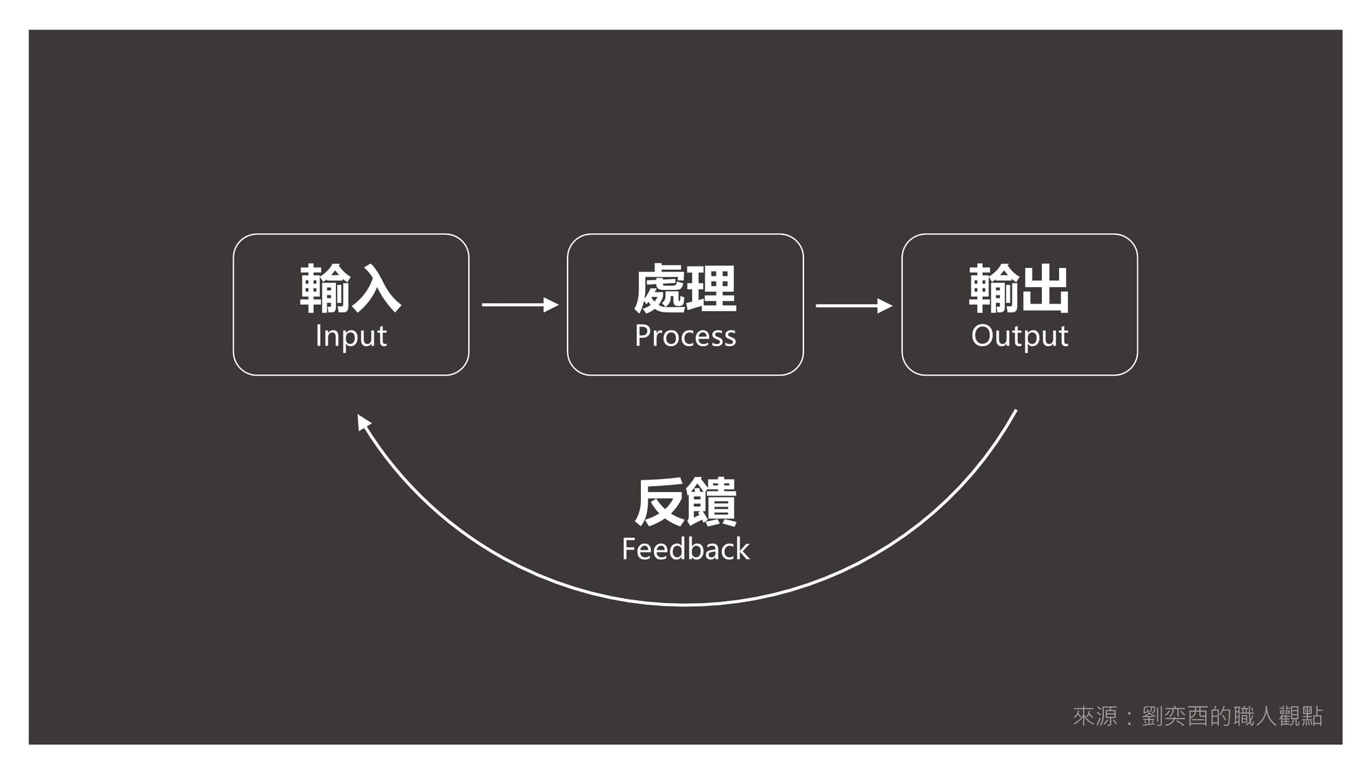這也是我從電腦科學「IPO」概念(Input-Process-Output)得到的啟發:多數人忽略了「處理」這個環節,導致難以產出有價值的內容。