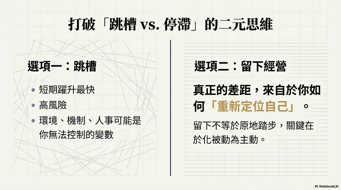 留下來,並不等於原地踏步;前提是,你不再只是被動忍耐,而是有意識地經營四種路徑,化被動為主動。