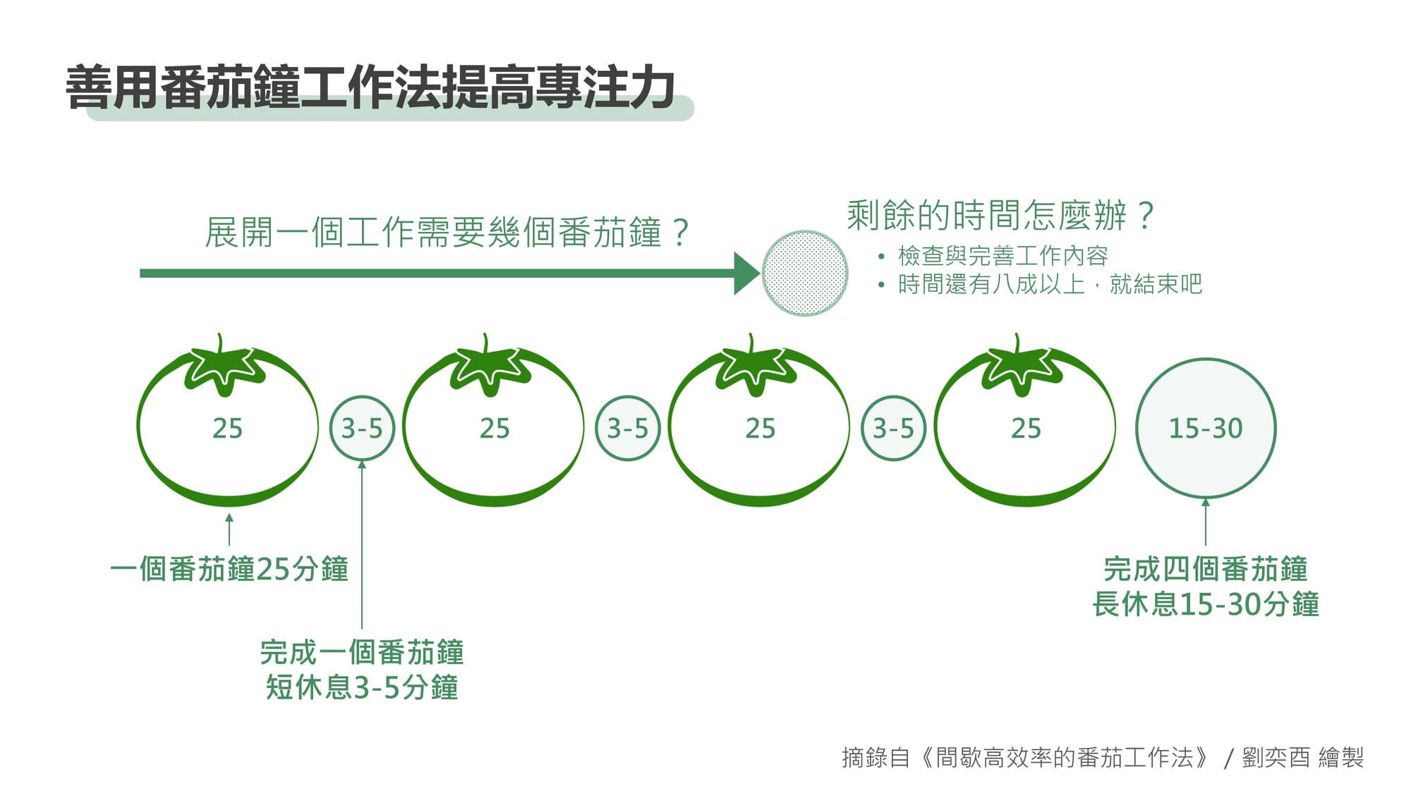 我們不太可能二十四小時心無旁騖,就如同體力一樣,專注力會耗盡、但也能恢復;因此,如何切換專注力的開關讓自己保持一個舒服的節奏,就是讓專注力發揮最大作用的關鍵。