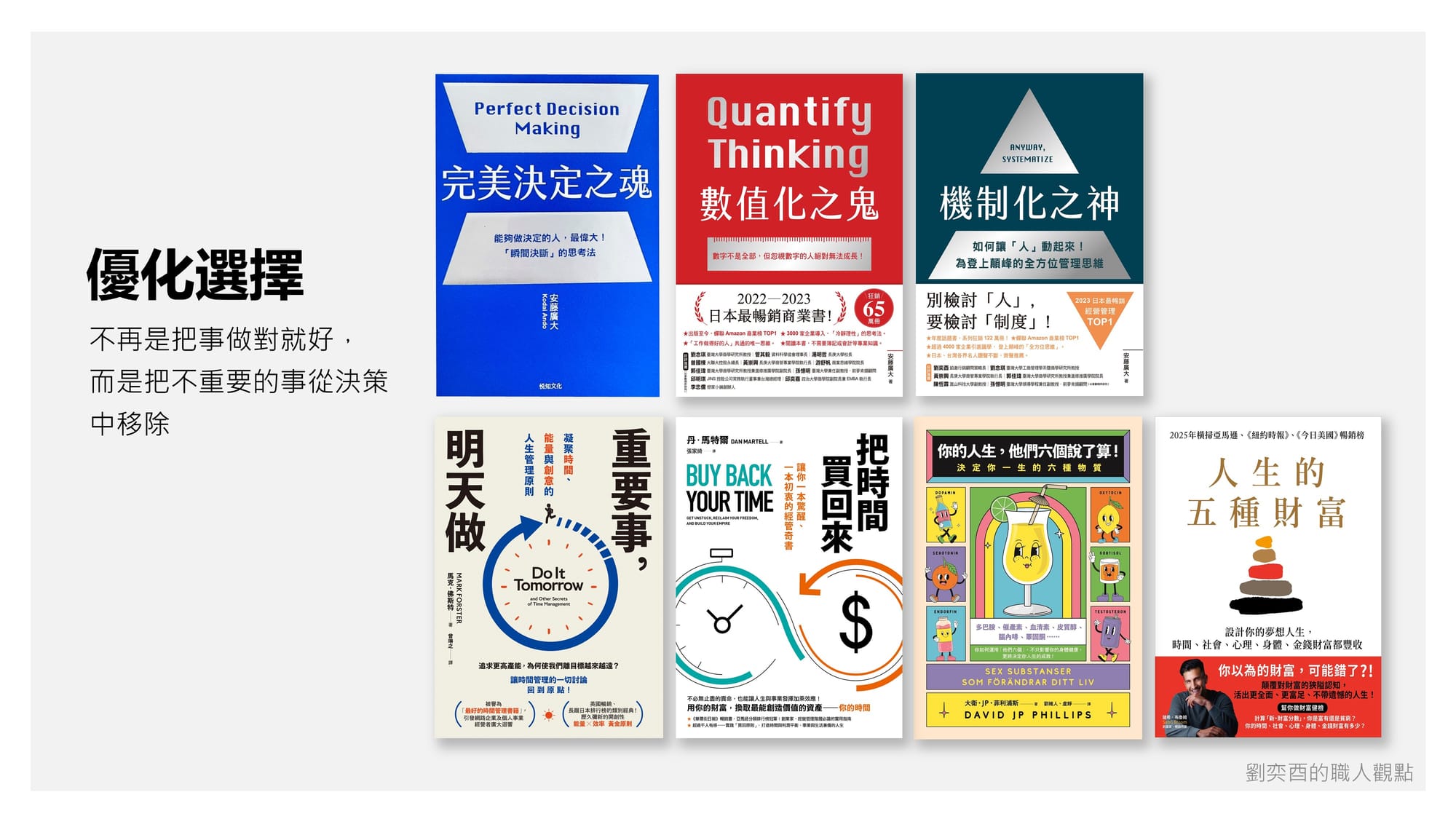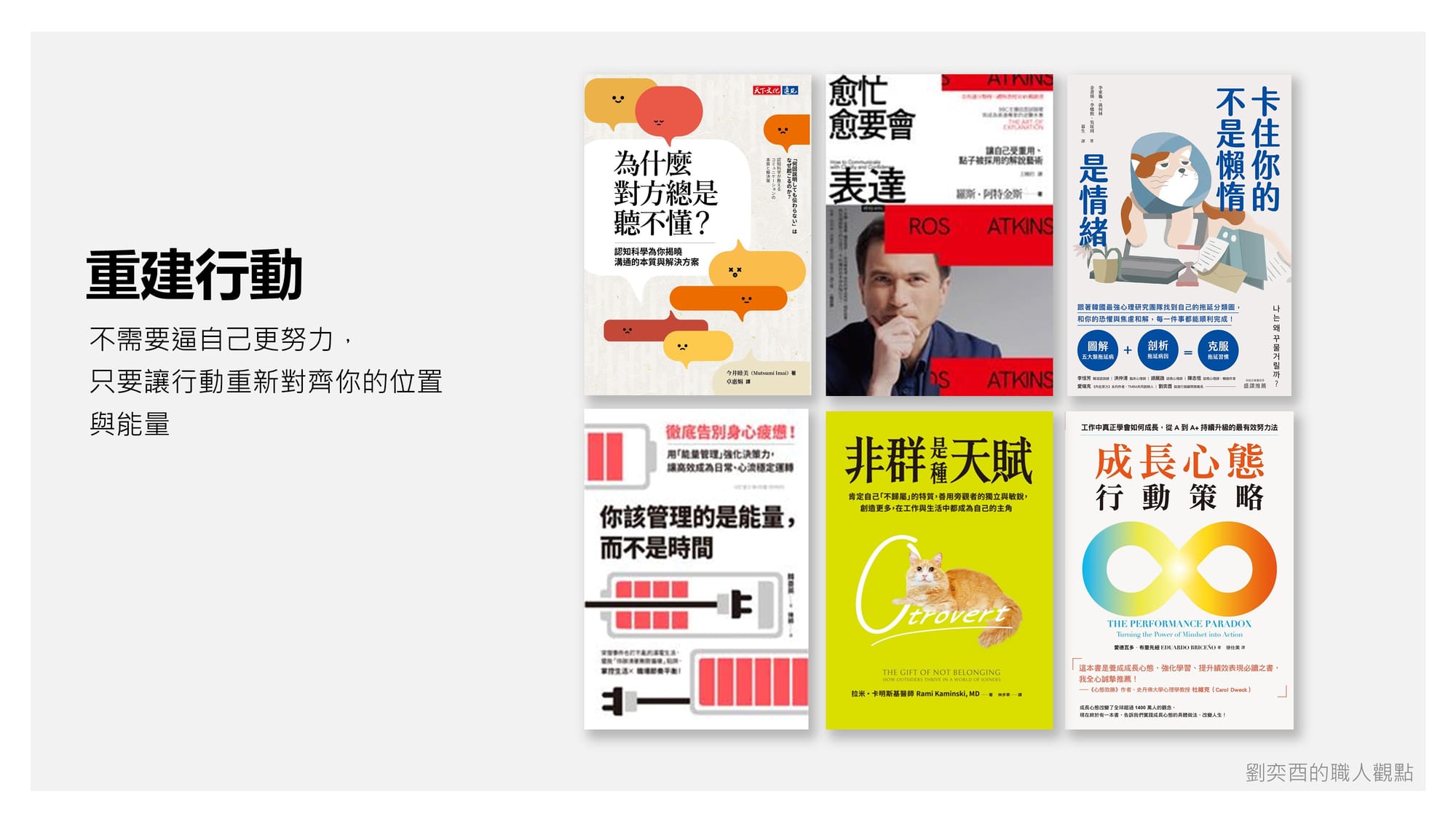 這份書單讓我重新思考行動方式的設計,除了時間管理和能量管理,我還納入了節奏管理的練習。