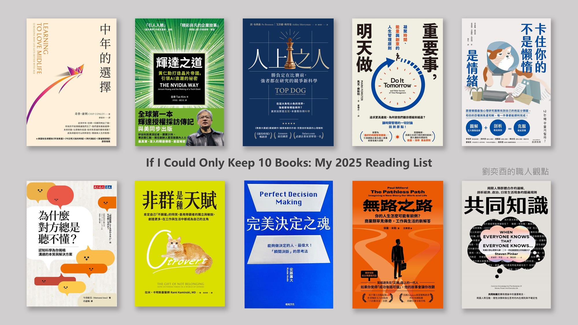 如果時間真的不夠,如果只能留下十本,哪些書是我願意在不同人生節點反覆翻閱、在做選擇時再次出現的?