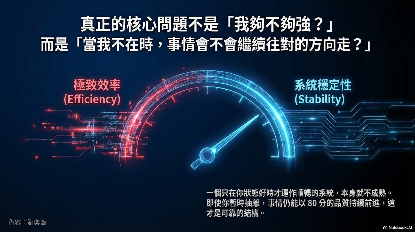 從風險管理角度來看,該追求的並非極致的效率,而是如何讓事情穩定、可預期,不因個人狀態劇烈波動。