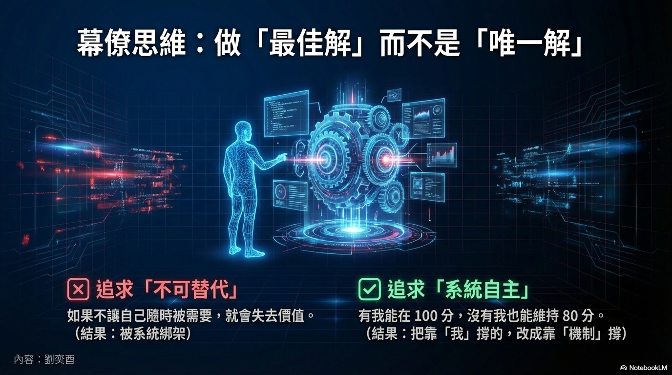 從系統角度來看,當所有事都依賴一個人,結構其實非常脆弱。