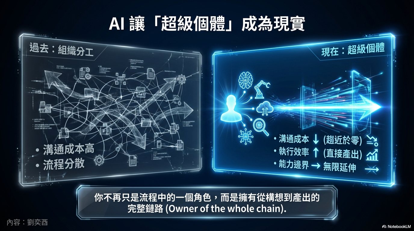 我並不否認這個趨勢。AI 的確讓「超級個體」成為現實,也讓個體第一次在能力上,真正逼近組織。