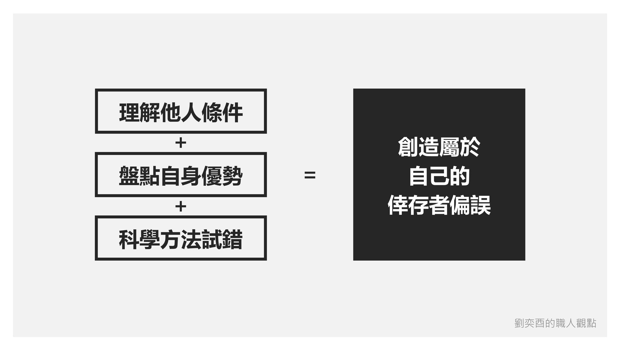 而這個理解的過程,其實也是在慢慢靠近一個我現在更相信、也在追求的目標:創造屬於自己的倖存者偏誤。