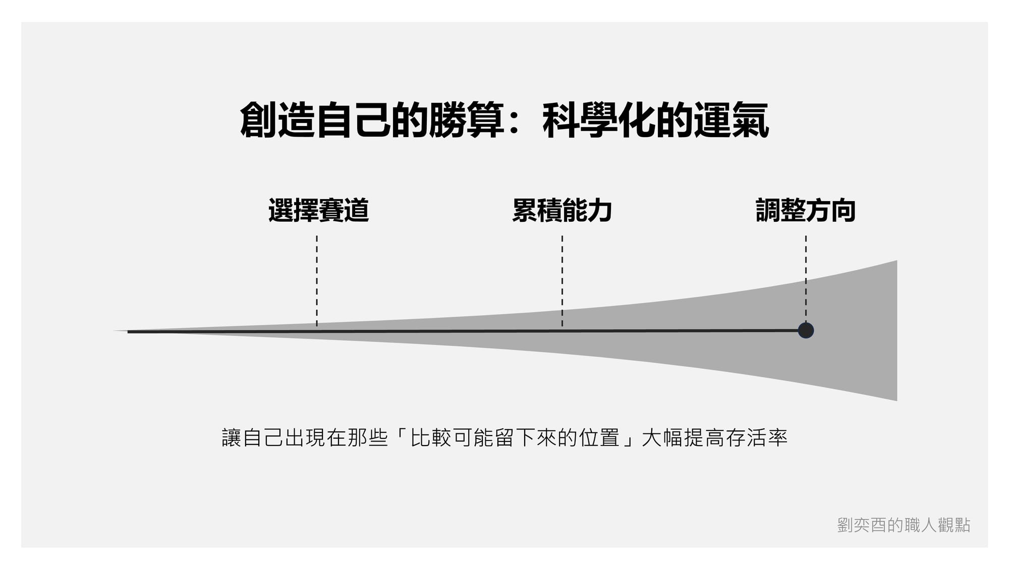 這也可以理解為一種「科學化」的運氣:透過選擇賽道、累積能力、調整方向,讓自己出現在那些比較可能留下來的位置,提高勝算。