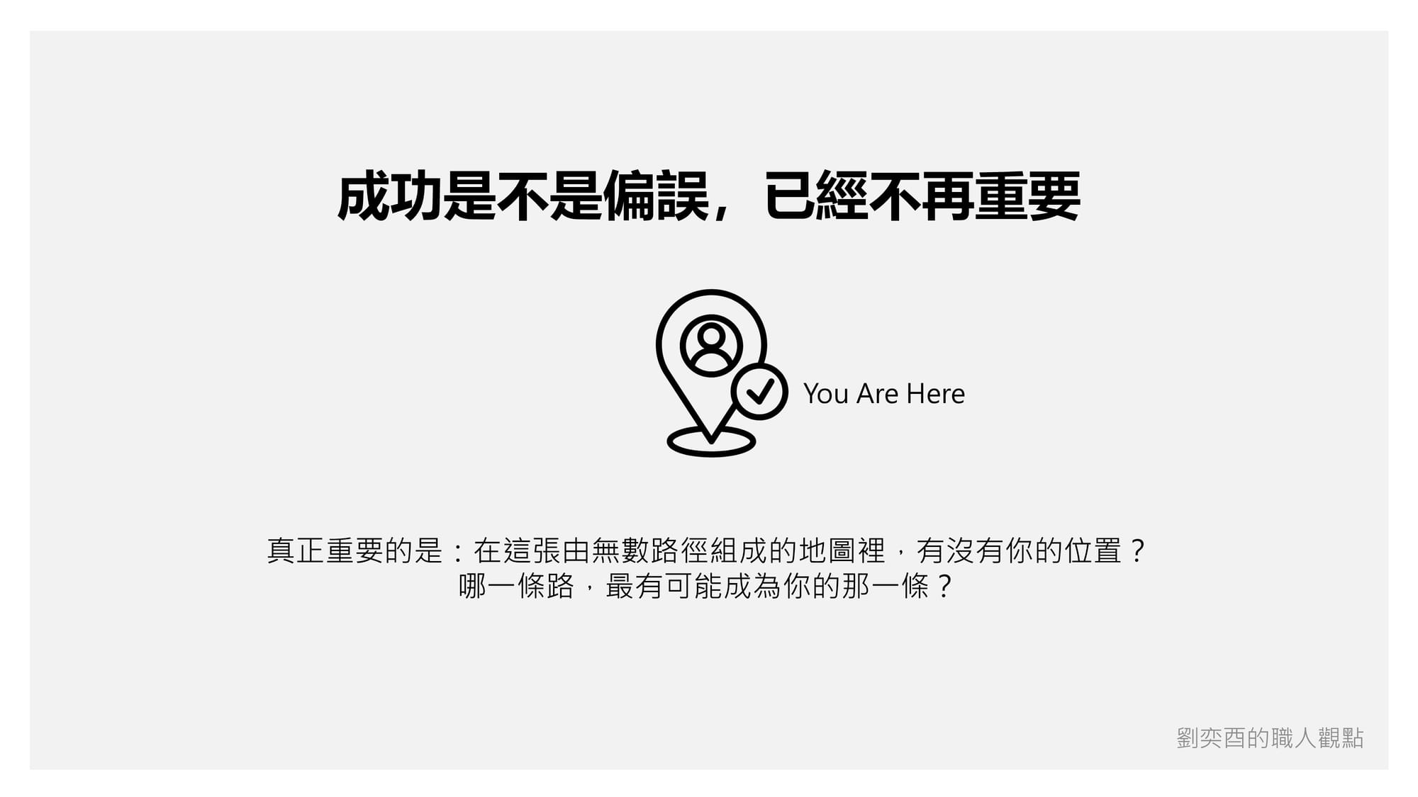 真正重要的是:在這張由無數成功路徑組成的地圖裡,有沒有自己的位置?如果有,位置又是在哪裡?以及