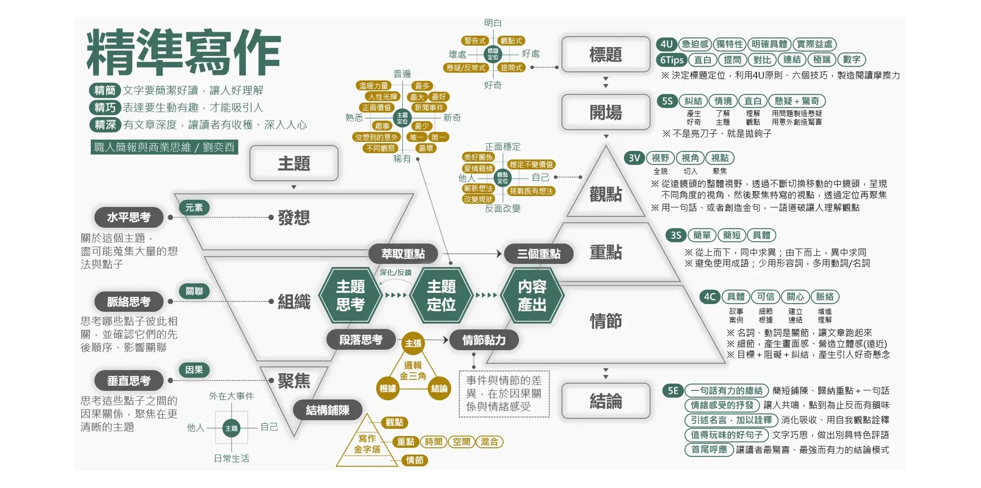 如果你想看關於《精準寫作》的閱讀觀點,可以參考這一篇「精準寫作,用簡單的文字,寫出令人感動、有重量的內容」,或許你更有印象的是當時我畫的這一張全息圖。