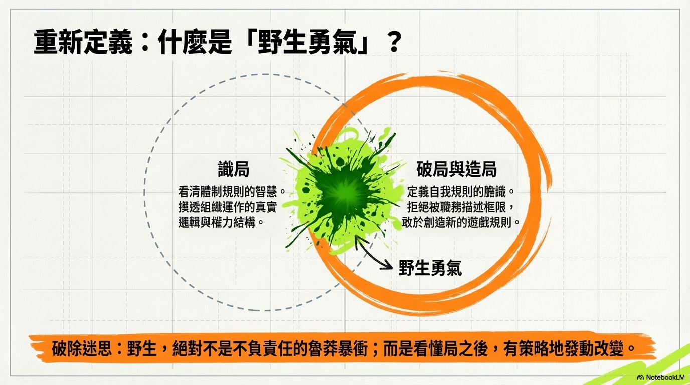 所謂的「野生勇氣」並非敢衝、敢撞,不負責任的魯莽,而是一種在看清規則後,仍敢於定義自己遊戲規則的智慧。