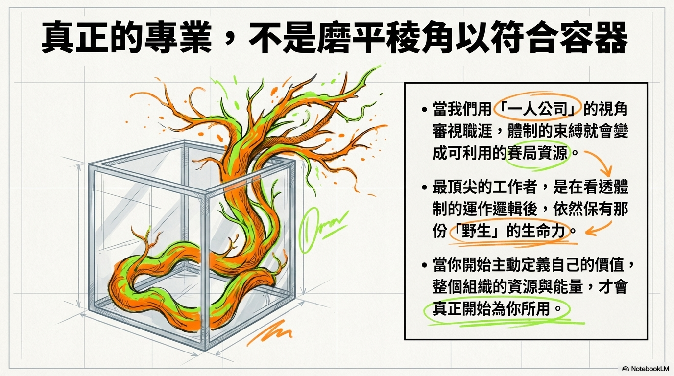 當我們開始用經營公司的視角來審視自己的職涯,那些原本被視為負擔的職場規則,就會轉化為可利用的資源與賽局。正如 Jennie Wood 在書中所展現的,真正的專業不在於磨平稜角以符合容器,而是在看透體制的運作邏輯後,依然保有那份「野生」的生命力。